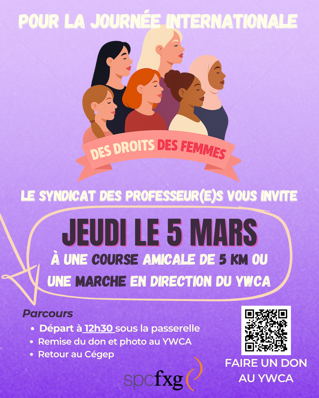 Toute l’équipe de l’exécutif syndical du SPCFXG vous souhaite une belle session d’hiver 2026. Nous rêvons pour vous d’une rentrée dynamique, pleine d’inspiration et de succès. Nous avons tous envie pour vous d’une session pleine d’apprentissages, de rires et d’épanouissement. Bon retour en classe!